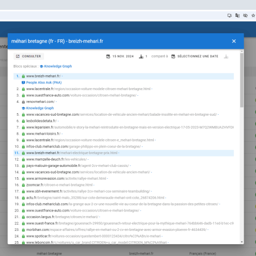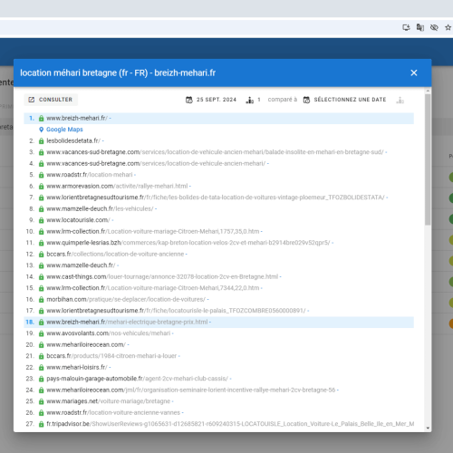 Ci-dessous, captures d'écrans des différentes positions sur Google en référencement naturel du site internet de Breizh Méhari